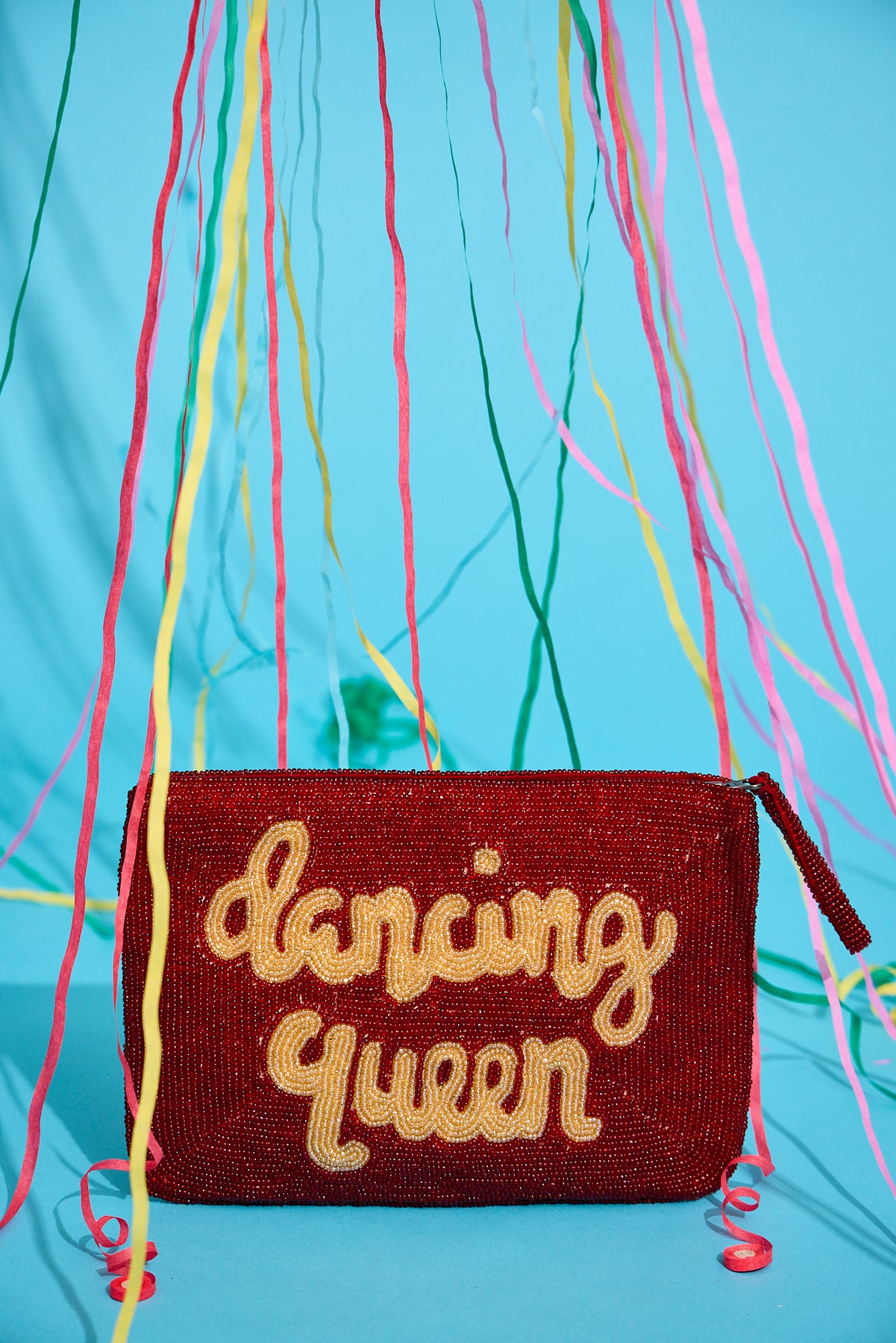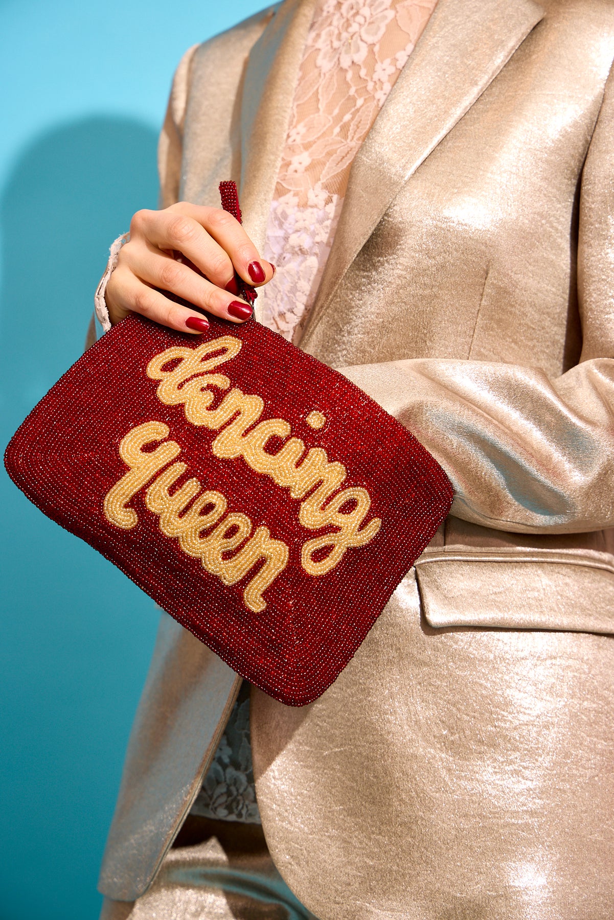 Dancing Queen Beaded Clutch in navy or cherry with gold.