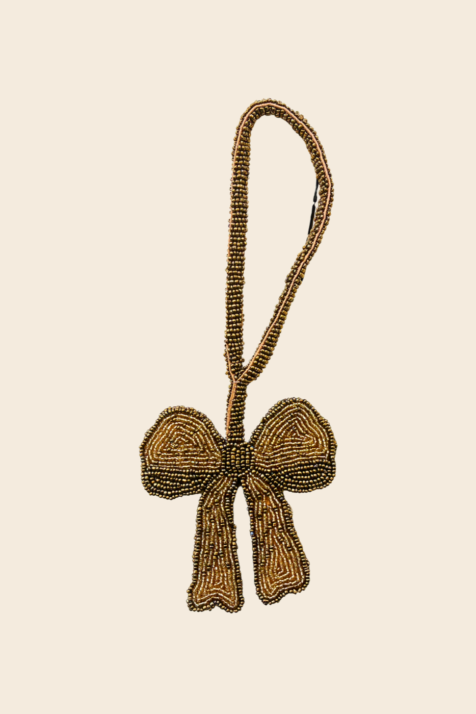Created through our partnership with talented artisans in Bangladesh. Each bag charm is individually made by hand embroidering continuous lines of glass beads over stretched cotton with a specialist skill known as Tambour Beading, a technique synonymous with haute couture embellishment.