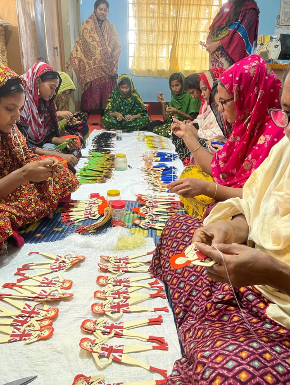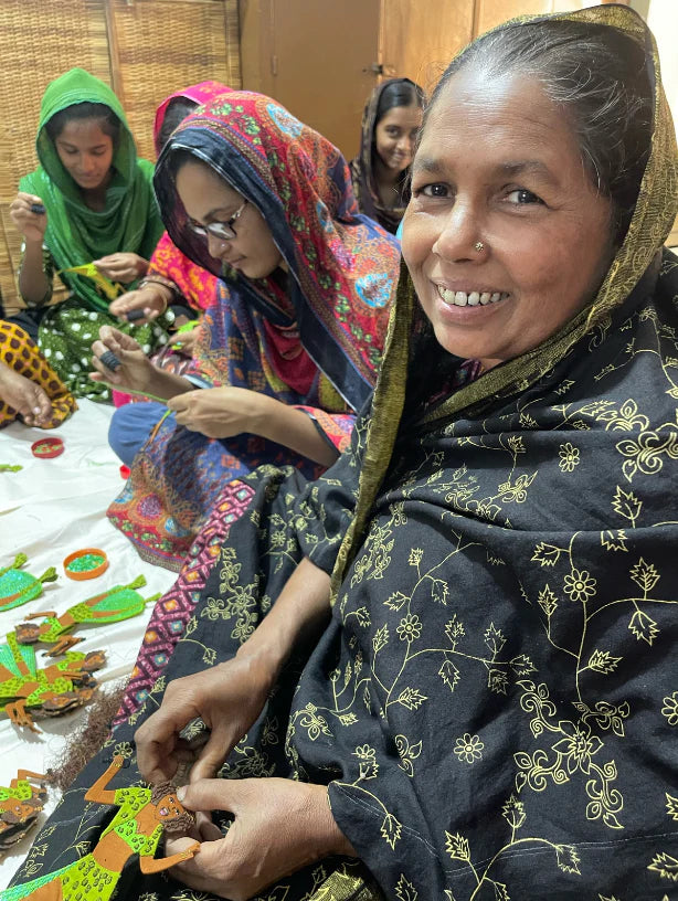 Hand stitched by a group of skilled artisans in rural Bangladesh.