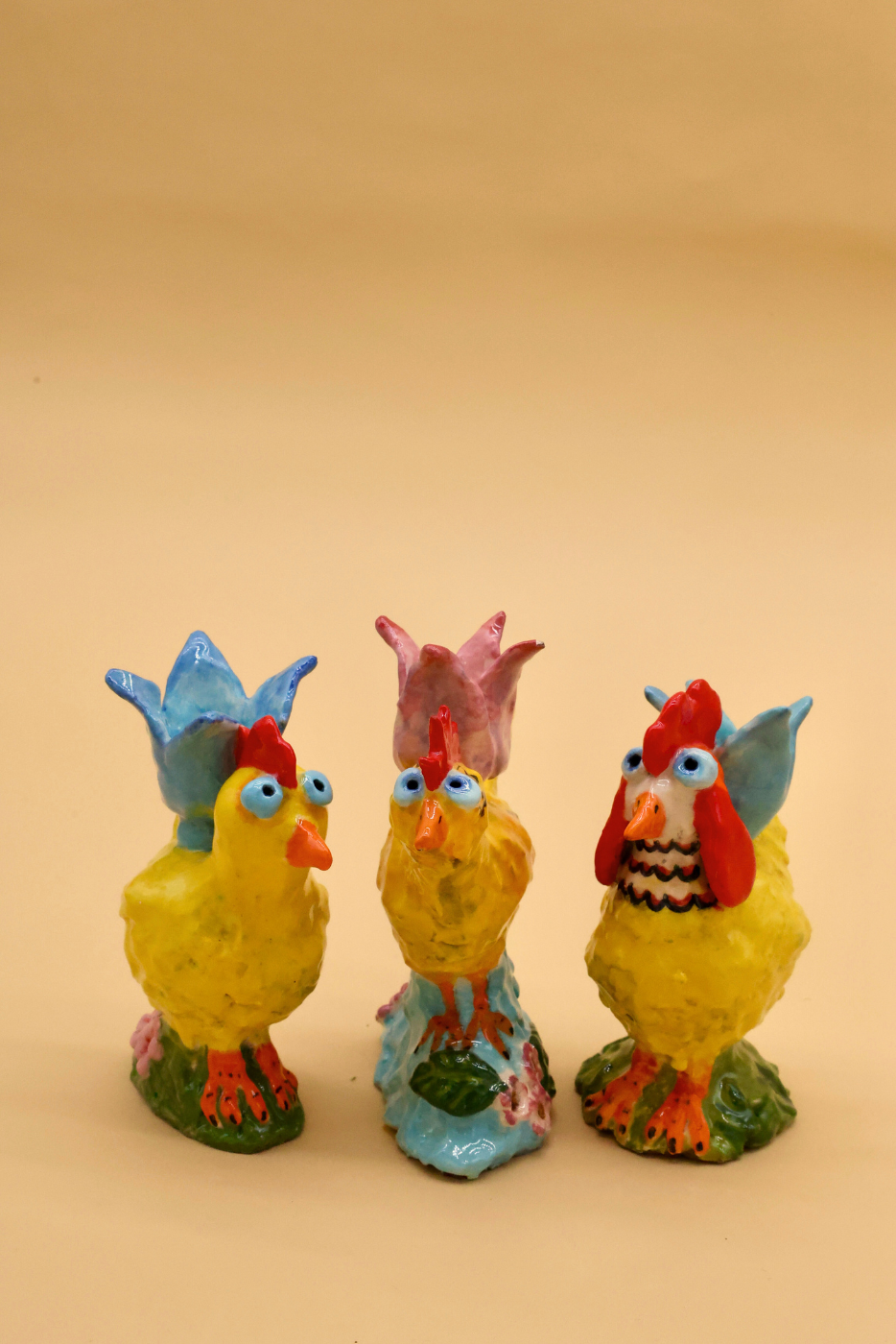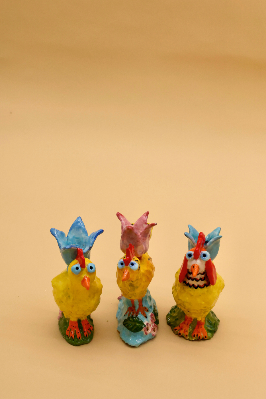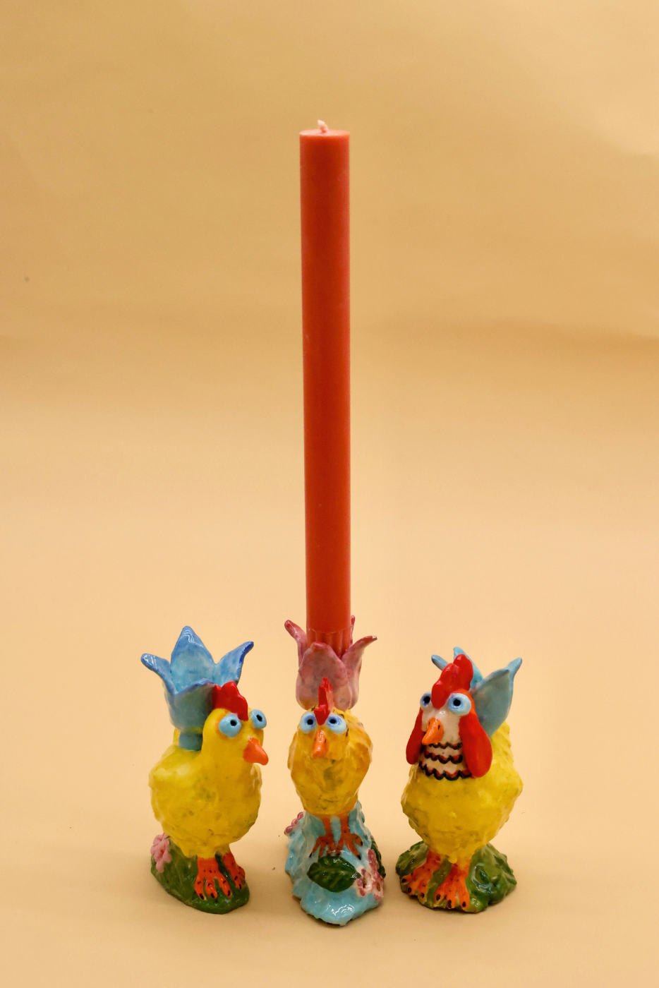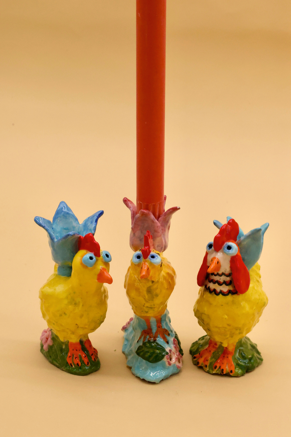 Handmade chick candle holders by potter Nicola Easton.