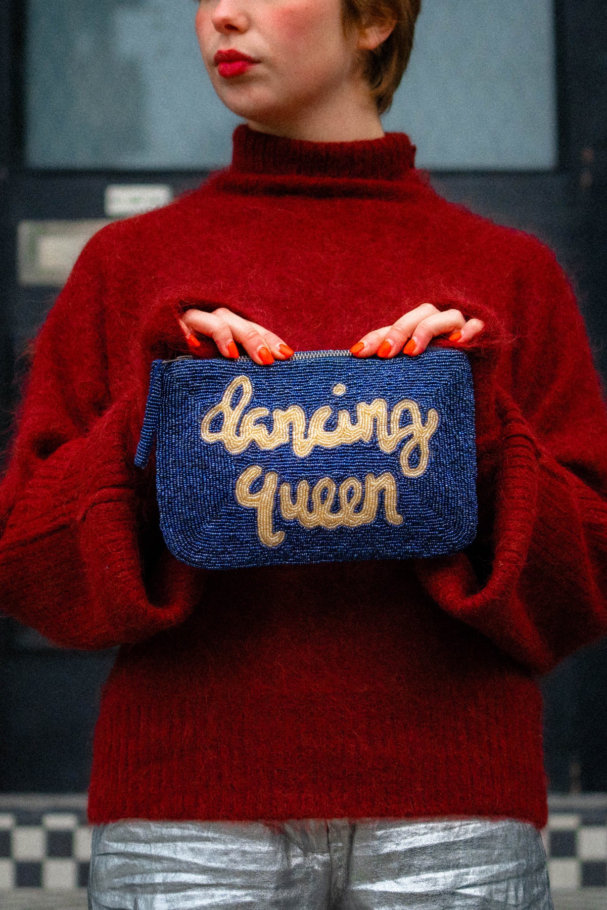 Dancing Queen Beaded Clutch in navy or cherry with gold.
