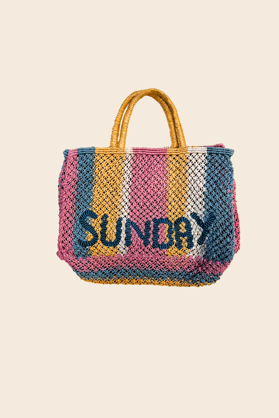 The Jacksons bags are established worldwide as the original jute macrame bags, authentically made by hand. Having spent over 15 years refining and pushing the boundaries of this traditional bag making technique, the brand's unique placement of words and characters are instantly recognisable. Practical and playful, they are designed for everyday use as the perfect shopper, beach bag, travel bag or stylish tote for work or pleasure. Their colourful combinations and positive affirmations are sure to bring joy to your day.