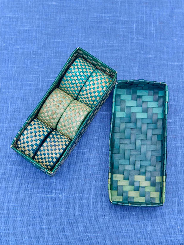 These Chequerboard napkin rings and placemats are handmade using natural reeds that are dyed using Azo free dye. The coloured reeds are handwoven into different chequerboard patterns. Designed to complement each other and add colour and texture to your seasonal tablescapes. Sold as a pack of 6.