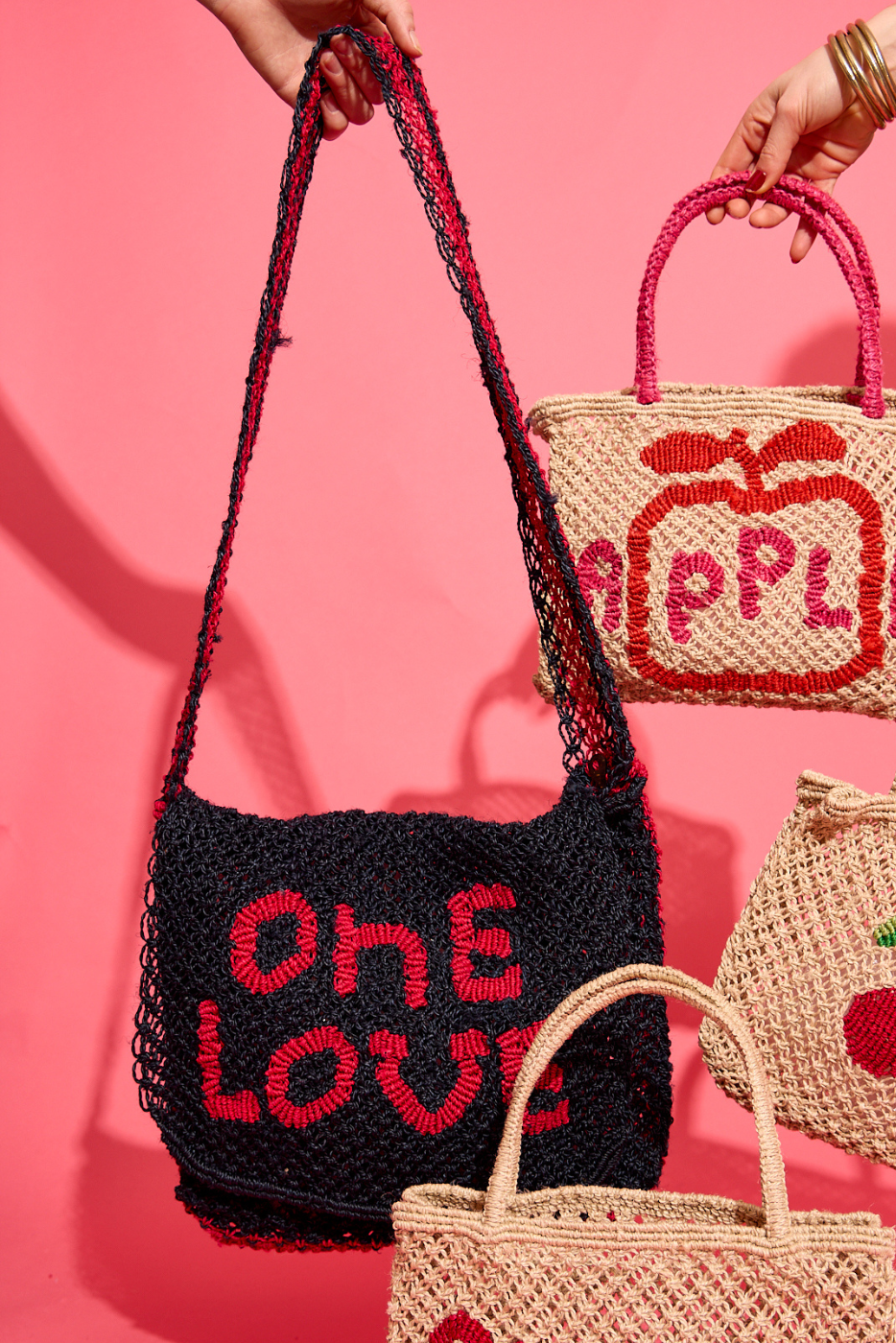 The Jacksons bags are established worldwide as the original jute macrame bags, authentically made by hand. Having spent over 15 years refining and pushing the boundaries of this traditional bag making technique, the brand's unique placement of words and characters are instantly recognisable. Practical and playful, they are designed for everyday use as the perfect shopper, beach bag, travel bag or stylish tote for work or pleasure. Their colourful combinations and positive affirmations are sure to bring joy to your day.