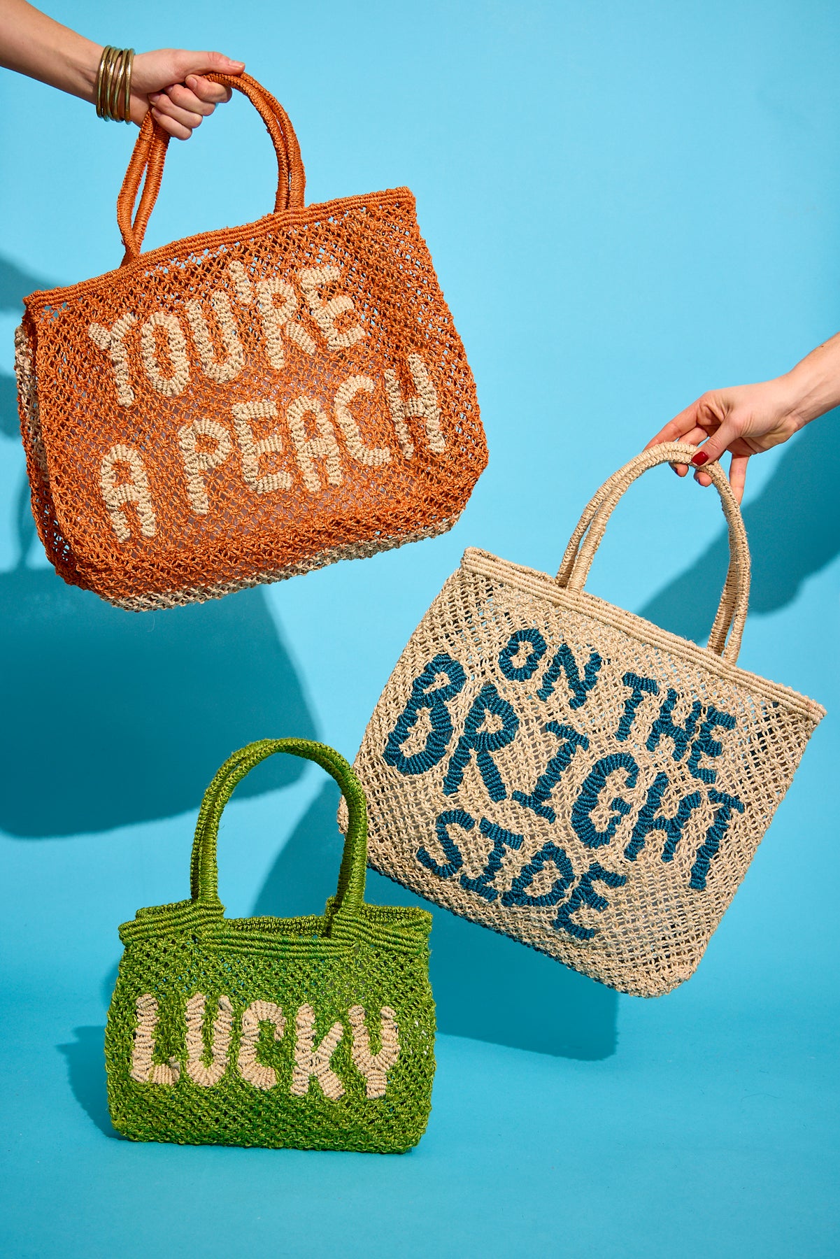 The Jacksons bags are established worldwide as the original jute macrame bags, authentically made by hand. Having spent over 15 years refining and pushing the boundaries of this traditional bag making technique, the brand's unique placement of words and characters are instantly recognisable. Practical and playful, they are designed for everyday use as the perfect shopper, beach bag, travel bag or stylish tote for work or pleasure. Their colourful combinations and positive affirmations are sure to bring joy to your day.