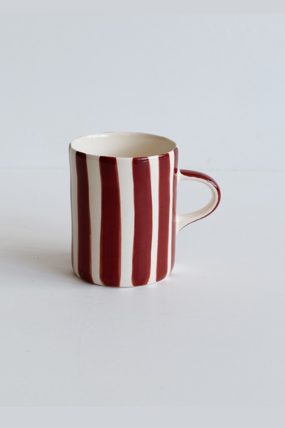 These small, slim Candy Stripe Mugs have a simple but beautiful and vibrant stripe design, and are perfect for a comforting drink of just about anything. They are hand made and hand painted by artists in Portugal.